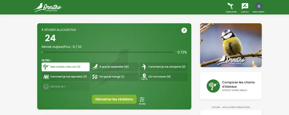 The introductory module of the Ornitho Mnemolia course is free and commitment-free. It starts with the blue tit, a common but often misunderstood species. Discover the free module.
