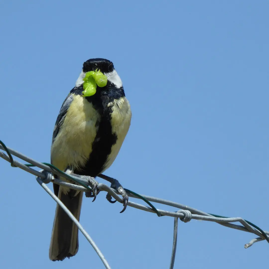 El carbonero común es uno de los herrerillos más grandes, similar en tamaño a un gorrión. Su cabeza negra se distingue por las mejillas blancas, una combinación de colores que hace a esta ave fácilmente identificable.